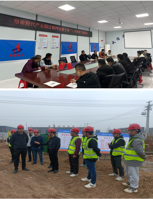 3月22日第六分公司在宿徐現(xiàn)代產(chǎn)業(yè)園市政項目召開“黨員先鋒號、工人先鋒號、青年文明號”三號聯(lián)創(chuàng)工作動員會。