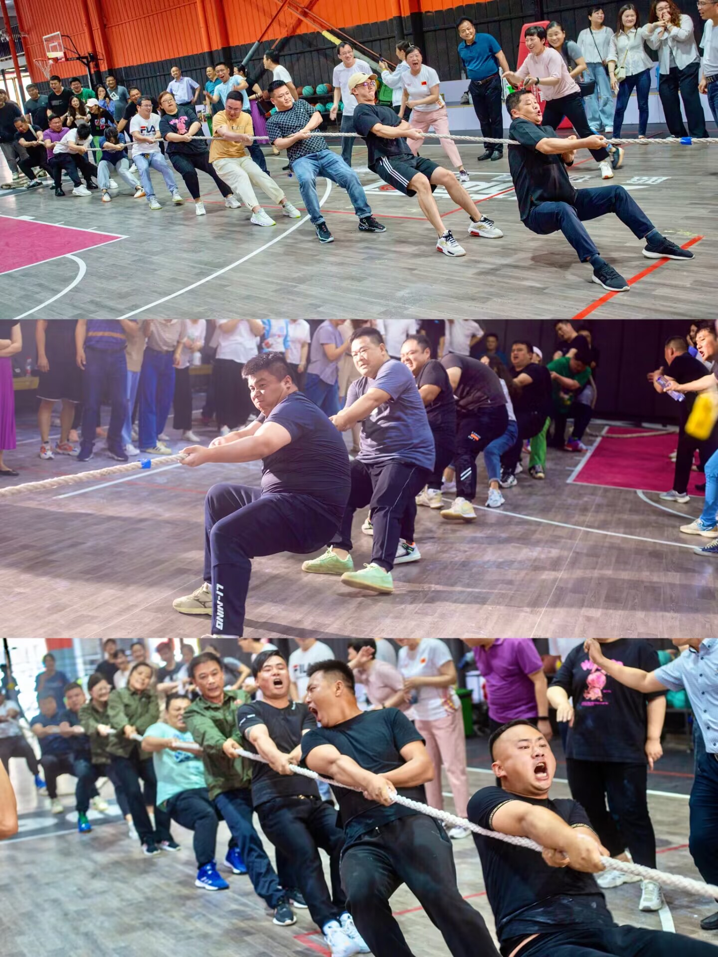 5月31日下午,隨著裁判員的一聲令下,公司拔河比賽正式開始了!除了九支參賽隊伍以外,比賽現(xiàn)場還有不少觀戰(zhàn)的同事們吶喊助威,大家為選手們加油打氣,氣氛活躍又融洽,場面甚是熱鬧。“1、2、3,1、2、3,拉!使勁!”參賽隊員們喊著整齊的口號,雙手緊抓繩子,手緊挨著手,繃緊雙腿,用盡全身力氣往后拉,身體盡力向后傾。選手們個個咬緊牙關(guān),奮力一搏。拔河繩中間鮮艷的藍(lán)色標(biāo)記一會兒移向這邊,一會兒又移向那邊,大家互不相讓,不甘示弱!比賽高潮不斷,過程跌宕起伏,時而穩(wěn)持,時而拉鋸,你來我往,選手們揮汗如雨,不到最后一刻堅決不放棄,眼中始終閃爍著勇往直前、無所畏懼的堅定光芒。