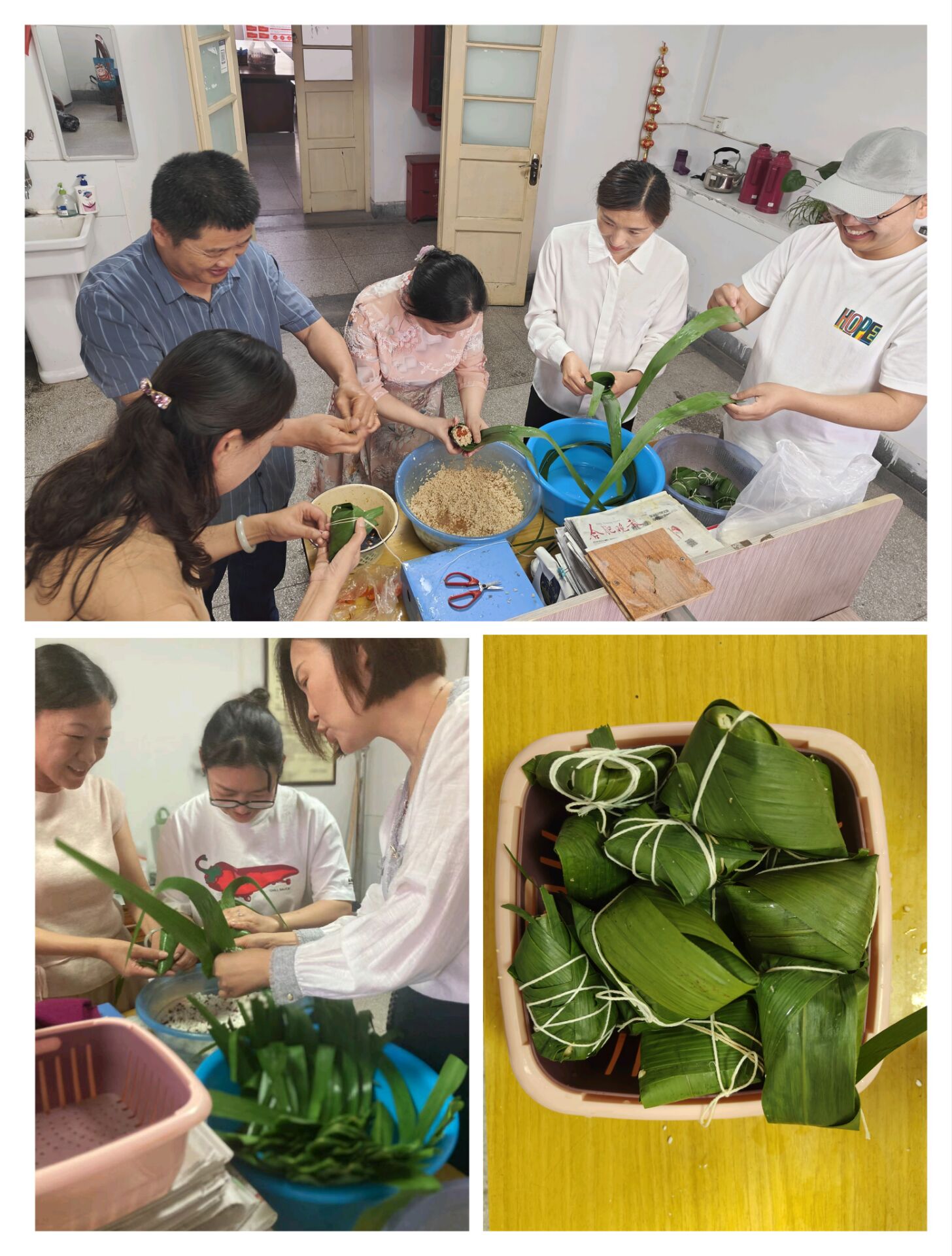 活動現(xiàn)場,粽葉、糯米、絲線等材料整齊擺放,同事們紛紛踴躍參與。大家圍坐在一起,相互交流包粽子的技巧和經(jīng)驗,現(xiàn)場充滿了歡聲笑語。無論是經(jīng)驗豐富的“包粽達(dá)人”,還是初次嘗試的新手,都全心投入,努力讓自己手中的粽葉變成一個個飽滿可愛的粽子。