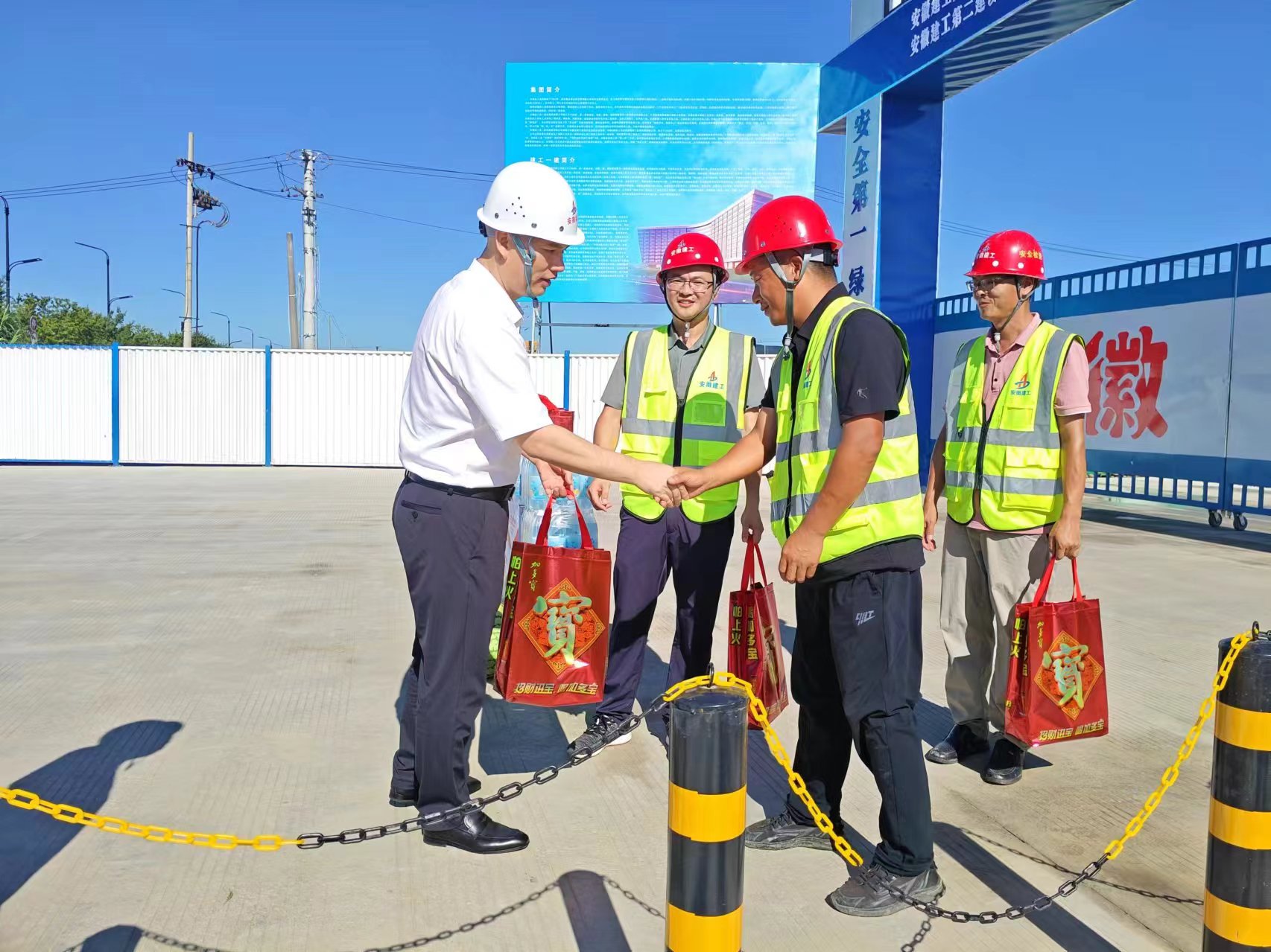 2024年7月30日,建工股份副總經(jīng)理,建工二建黨委書記、董事長(zhǎng)朱忠明赴安徽建工集團(tuán)智能綠色制造(長(zhǎng)豐)產(chǎn)業(yè)園項(xiàng)目開展“工會(huì)送清涼 防暑保安康”慰問活動(dòng)。