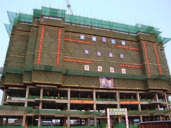 該工程建筑面積13524㎡,為框架結(jié)構(gòu),總高度46.7m,地下一層,地上十一層。工程自去年12月20日開工后,公司就提出了創(chuàng)建目標(biāo)。公司有關(guān)部門提前編制出創(chuàng)優(yōu)實施方案,項目部在施工過程中精心組織,嚴(yán)格管理,各項工作穩(wěn)步開展。