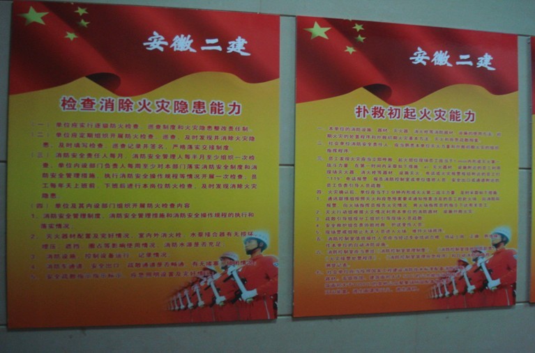 圖為張貼在公司辦公樓走廊里的消防宣傳畫