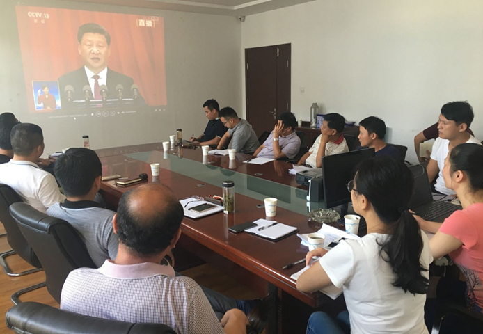在觀看學(xué)習(xí)習(xí)總書記在慶祝中國共產(chǎn)黨成立95周年大會(huì)上的講話時(shí),同志們聚精會(huì)神,不時(shí)提筆記錄,緊隨著總書記的講話內(nèi)容邊學(xué)習(xí)邊思考。