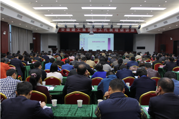 為提高集團(tuán)公司職工代表參政議政的素質(zhì)和能力,2016年11月7日下午,公司組織14名職工代表參加集團(tuán)公司在安建大廈三樓會議室舉辦的首屆職工代表培訓(xùn)講座,講座特邀省總工會民主管理部部長余新茂授課。集團(tuán)工會主席徐曉光、副主席吳曉伍、女工主任胡愛紅等集團(tuán)機(jī)關(guān)及各子公司工會主席、集團(tuán)職工代表、各基層工會主席等200余人參加了此次培訓(xùn)講座。