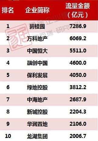 克爾瑞的數(shù)據(jù),碧桂園7287億元蟬聯(lián)第一,萬(wàn)科6069億元重回行業(yè)第二,恒大5511億元的位居第三。