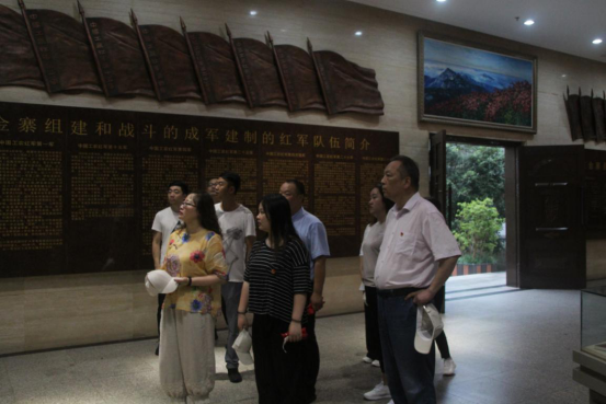 首先,大家來到了位于金寨縣梅山鎮(zhèn)的紅軍廣場,參觀了烈士紀(jì)念館、革命博物館、洪學(xué)智將軍紀(jì)念碑、紅軍烈士墓園、紅軍紀(jì)念堂,瞻仰了革命烈士紀(jì)念塔。在紀(jì)念館前,全體人員向革命烈士鞠躬,表達了對革命烈士的深切緬懷和無限敬仰。在革命博物館,大家仔細(xì)觀看一張張歷史圖片、一段段文字資料、一件件珍貴文物,親身感受革命先烈們?yōu)閷で笳胬矶幌侇^顱、灑熱血的英雄壯舉,接受了一次心靈的洗禮和思想的凈化,受到了一次深刻的革命傳統(tǒng)教育。