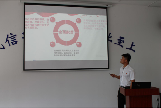 微宣講競賽結(jié)束后,緊接著開展了“黨課開講啦”活動,所屬各支部書記、優(yōu)秀黨員代表結(jié)合自己的工作實際,講述對決勝全面建成小康社會、決戰(zhàn)脫貧攻堅、打贏疫情防控阻擊戰(zhàn)等一線先進事跡的所見所聞所悟,引起了大家的深思與共鳴,為全面打好精準脫貧攻堅戰(zhàn)提供堅強組織保證。