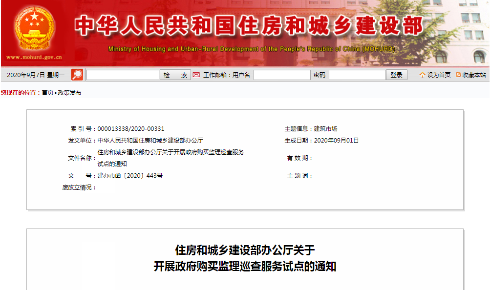 住房和城鄉(xiāng)建設(shè)部開(kāi)展政府購(gòu)買(mǎi)監(jiān)理巡查服務(wù)試點(diǎn)