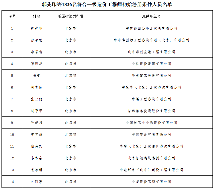 根據(jù)《注冊造價工程師管理辦法》的規(guī)定,經(jīng)審核,1826人符合一級造價工程師初始注冊條件、492人不符合一級造價工程師初始注冊條件,現(xiàn)將名單予以公示,公示期為2020年10月9日至2020年10月21日。