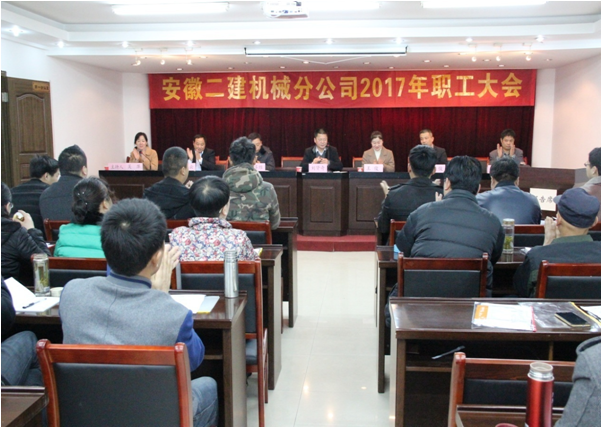 立足新起點(diǎn),實(shí)現(xiàn)新跨越!3月23日上午,安徽二建機(jī)械分公司在原公司三樓會(huì)議室隆重召開2017年職工大會(huì)。公司黨委書記劉賢奇、紀(jì)委書記仇多維、女工主任王俊及機(jī)械分公司領(lǐng)導(dǎo)班子成員與職工40多人參加了會(huì)議。