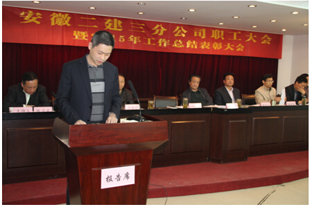 分公司黨支部書(shū)記陳習(xí)武在會(huì)議上就2015年分公司黨務(wù)、工會(huì)工作做了總結(jié)發(fā)言,并強(qiáng)調(diào)2016年分公司黨務(wù)、工會(huì)工作要繼續(xù)以“全面貫徹黨的十八大、十八屆三中、四中、五中全會(huì)精神,深入落實(shí)集團(tuán)首屆職代會(huì)精神及二建公司十五屆三次職代會(huì)精神”為主要工作,夯實(shí)基礎(chǔ),充分發(fā)揮群團(tuán)組織作用,加強(qiáng)宣傳思想政治工作,推動(dòng)企業(yè)企務(wù)公開(kāi),堅(jiān)持黨風(fēng)廉政建設(shè)和反腐倡廉工作,為促進(jìn)企業(yè)和諧穩(wěn)定發(fā)展保駕護(hù)航。