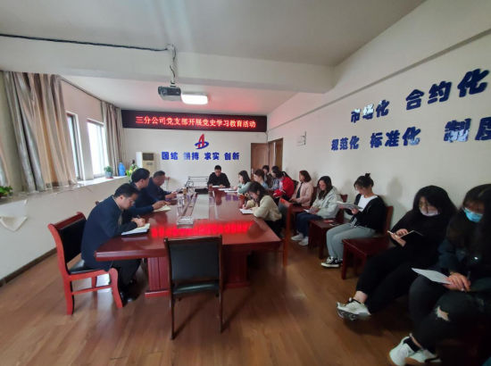 三分公司黨支部開展黨史學(xué)習(xí)教育活動,分公司機關(guān)全體人員參加,活動由支部書記陳習(xí)武主持。首先,陳習(xí)武帶領(lǐng)大家學(xué)習(xí)了二建黨發(fā)【2021】13號文《安徽二建公司黨委關(guān)于開展黨史學(xué)習(xí)教育的工作方案》,并就分公司黨支部的黨史學(xué)習(xí)教育活動做了詳細安排部署,要求全體黨員干部把思想和行動統(tǒng)一到集團、公司黨委的決策部署上來,高標準、高質(zhì)量完成黨史學(xué)習(xí)教育各項任務(wù),努力做到學(xué)史明理、學(xué)史增信、學(xué)史崇德、學(xué)史力行,以優(yōu)異成績迎接建黨100周年。隨后,陳習(xí)武帶領(lǐng)大家上了一堂生動的黨史課?!皬纳虾J瘞扉T到嘉興南湖,一艘小小紅船承載著人民的重托、民族的希望,越過急流險灘,穿過驚濤駭浪,成為領(lǐng)航中國行穩(wěn)致遠的巍巍巨輪。”。通過視頻和講解相結(jié)合,為大家敘述了從中國共產(chǎn)黨成立到建立新中國,28年間,黨召開了一次次重要會議。這些會議作出的決策,指引了中國革命的方向,推動了歷史進程,具有里程碑意義。大家紛紛表示,將從黨史中汲取智慧和力量,堅定信仰信念,進一步提高黨性修養(yǎng),不忘初心,以實際行動發(fā)揮好黨員干部的模范帶頭作用,積極投入到干事創(chuàng)業(yè)中去,為分公司的發(fā)展添磚加瓦。