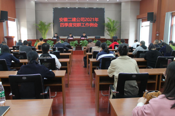 10月26日上午,安徽二建公司召開2021年四季度黨群工作例會,公司黨委副書記、工會主席王軍,黨委委員、紀(jì)委書記沈壯出席會議,機關(guān)黨群部門全體人員、基層各單位黨支部書記、團支部書記、綜合辦人員參會。會議由黨委工作部主任施用宏主持。