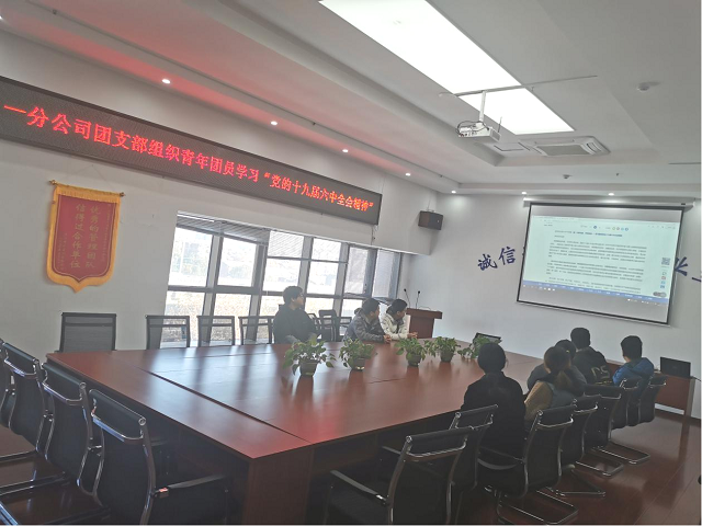 黨旗所指就是團(tuán)旗所向,12月3日上午,第一分公司團(tuán)支部在會議室組織機(jī)關(guān)青年團(tuán)員學(xué)習(xí)十九屆六中全會精神。