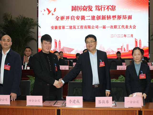 2月28日,安徽省第二建筑工程有限公司一屆一次職工代表大會(huì)在公司新會(huì)議室隆重召開(kāi)。會(huì)議堅(jiān)持以習(xí)近平新時(shí)代中國(guó)特色社會(huì)主義思想為指導(dǎo),全面貫徹黨的十九大和十九屆歷次全會(huì)精神,貫徹安徽省第十一次黨代會(huì)精神和安徽建工控股二屆二次職代會(huì)暨2022年工作會(huì)議精神,回顧總結(jié)2021年工作,分析研判當(dāng)前形勢(shì),部署2022年目標(biāo)任務(wù),號(hào)召全體職工忠誠(chéng)擁護(hù)“兩個(gè)確立”,堅(jiān)決做到“兩個(gè)維護(hù)”,在省委、省國(guó)資委、建工控股黨委的堅(jiān)強(qiáng)領(lǐng)導(dǎo)下,踔厲奮發(fā)、篤行不怠,埋頭苦干、勇毅前行,奮力譜寫(xiě)安徽二建高質(zhì)量發(fā)展新篇章,以實(shí)際行動(dòng)慶祝集團(tuán)建企70周年,以優(yōu)異成績(jī)迎接黨的二十大勝利召開(kāi)。