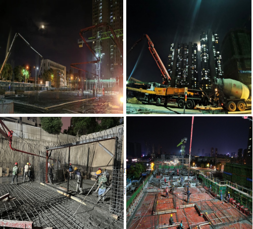 為完成各項節(jié)點計劃,項目管理人員帶領(lǐng)各勞務(wù)班組“搶晴天、戰(zhàn)雨天,牛毛細雨當好天”,搶抓工期,比拼進度;進入夏季以來,持續(xù)高溫,市氣象部門接連多次發(fā)布橙色預警,戶外溫度常達40度以上,為確保工人作業(yè)安全,項目部及時調(diào)整施工作業(yè)時間,在確保施工安全的前提下,采取“干兩頭、歇中間”的施工措施,組織班組加班加點分批交叉作業(yè),呈現(xiàn)出“月亮底下當白天,不給黑夜留時間”的大干火熱場面。同時項目部每日在高溫時段為現(xiàn)場施工人員送去防暑藥品和降溫飲品,防止意外發(fā)生。隨著最近氣溫逐漸轉(zhuǎn)涼,整個施工現(xiàn)場挖機聲、機械聲、泵送聲相互交織;夜色下施工現(xiàn)場燈光如晝,人頭躦動;渣土車、混凝土罐車川流不息往返穿梭,現(xiàn)場各個工作面的施工人員都卯足勁往前沖。