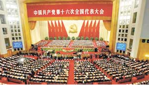 中國共產(chǎn)黨第十六次全國代表大會于2002年11月8日至14日在北京召開。這次大會應(yīng)到正式代表2114名、特邀代表40名(共2154名)(出席開幕式的代表和特邀代表共2134人),代表了全黨6600多萬黨員。大會通過關(guān)于《中國共產(chǎn)黨章程(修正案)》的決議,把“三個代表”重要思想同馬克思列寧主義、毛澤東思想、鄧小平理論一道確立為黨必須長期堅持的指導思想。